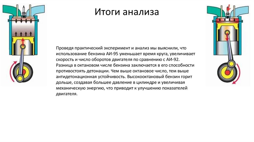 использование бензина АИ-95 уменьшает время круга, увеличивает