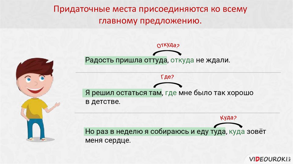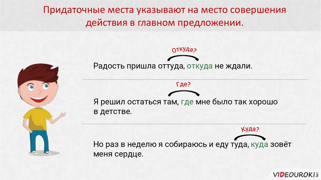 Придаточные места указывают на место совершениядействия в главном предложении.