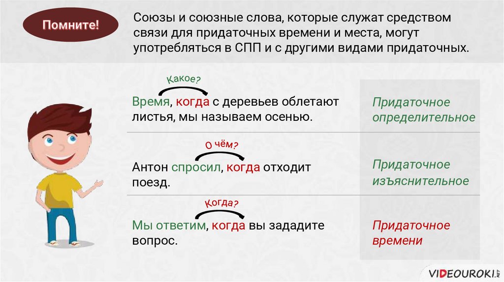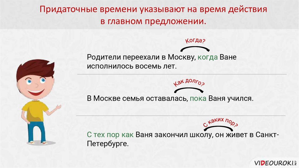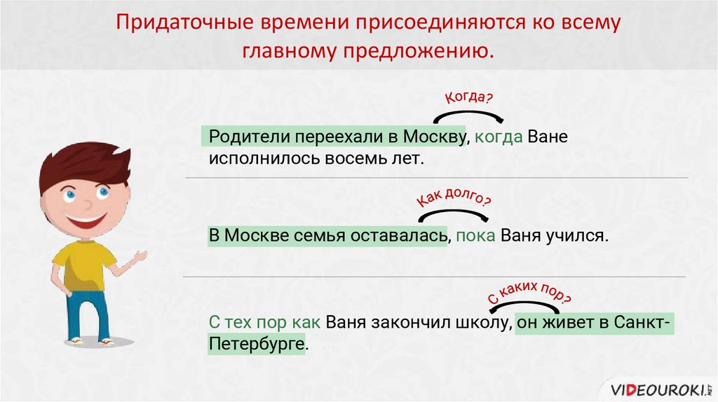 Придаточные времени присоединяются ко всемуглавному предложению.