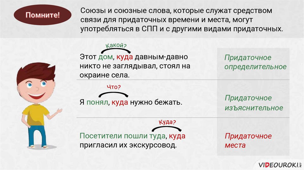 Союзы и союзные слова, которые служат средствомсвязи для придаточных времени и места, могут