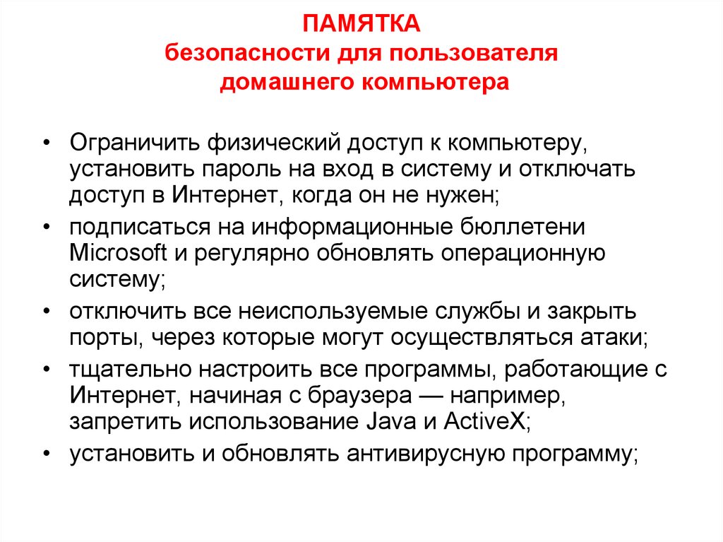 54. ПАМЯТКА безопасности для пользователя домашнего компьютера