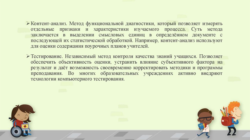 Контент-анализ. Метод функциональной диагностики, который позволяет измерятьотдельные признаки и характеристики изучаемого процесса. Суть метода