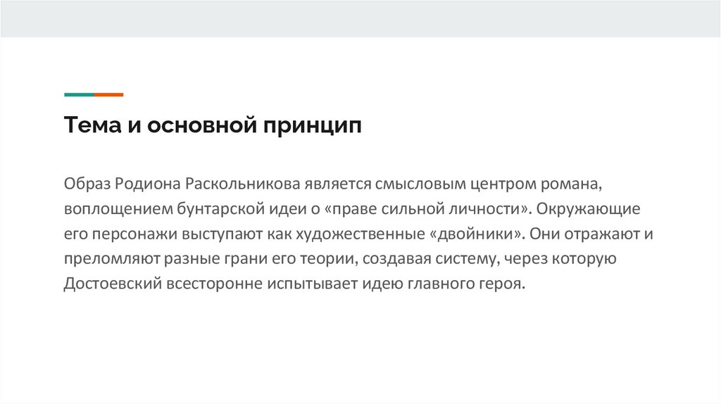 Тема и основной принципОбраз Родиона Раскольникова является смысловым центром романа,