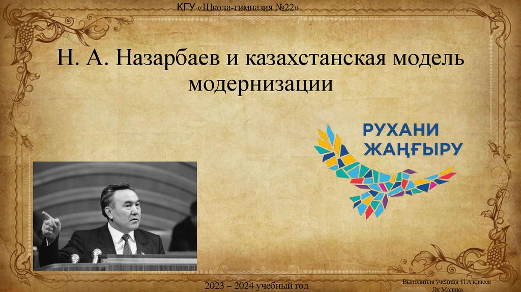 КГУ «Школа-гимназия №22»Н. А. Назарбаев и казахстанская модель