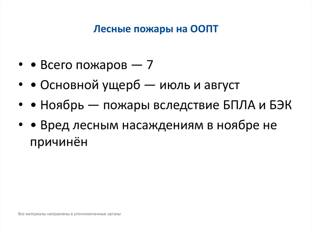 Лесные пожары на ООПТ• • Всего пожаров — 7