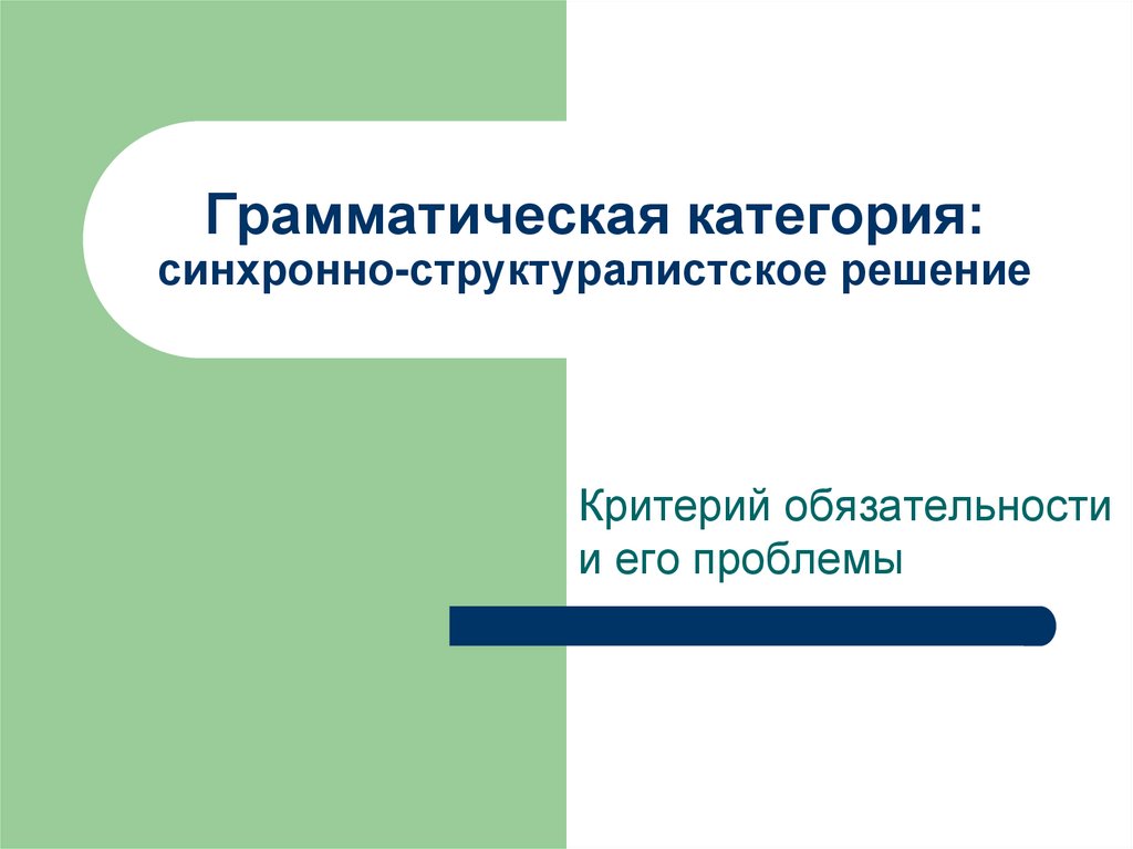 1. Грамматическая категория: синхронно-структуралистское решение