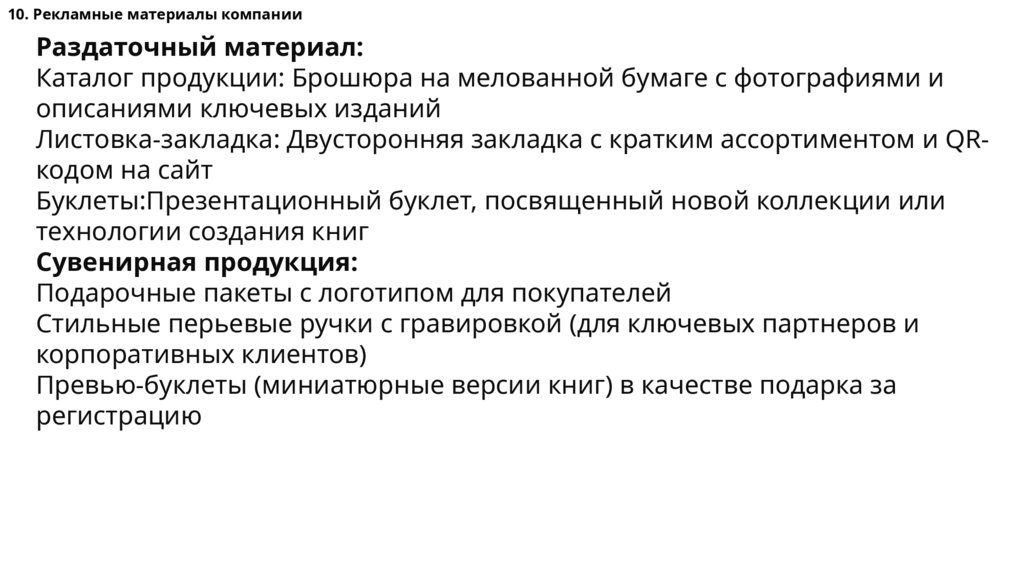 10. Рекламные материалы компанииРаздаточный материал:
