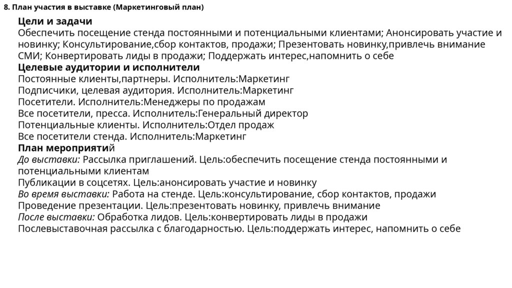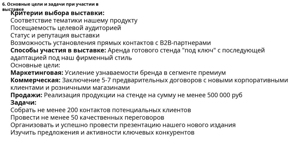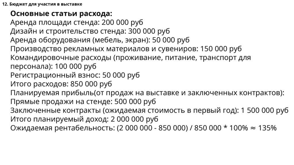 12. Бюджет для участия в выставкеОсновные статьи расхода: