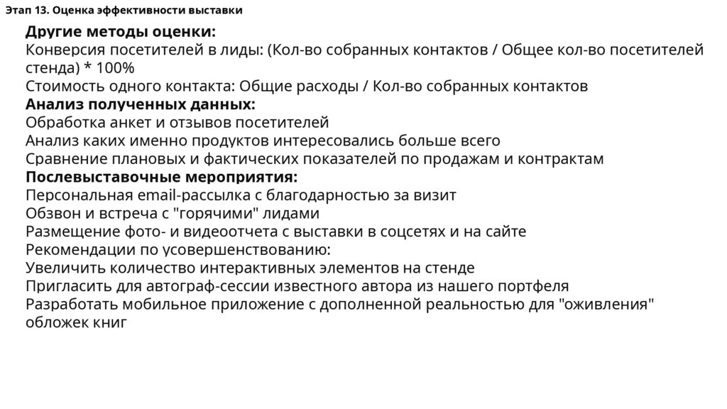 Этап 13. Оценка эффективности выставкиДругие методы оценки: