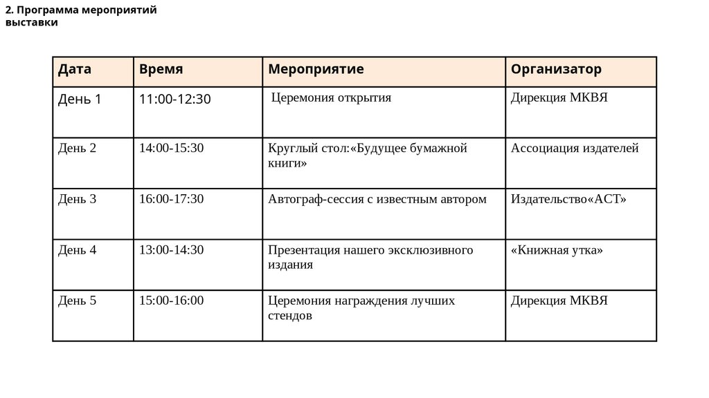 2. Программа мероприятийвыставки