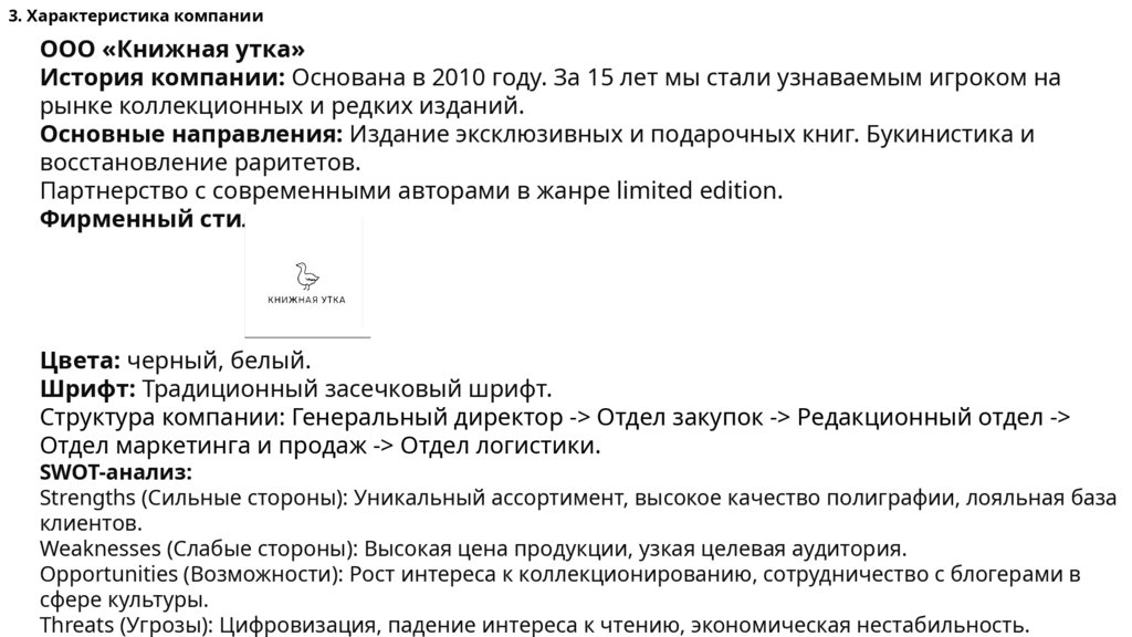3. Характеристика компанииООО «Книжная утка»