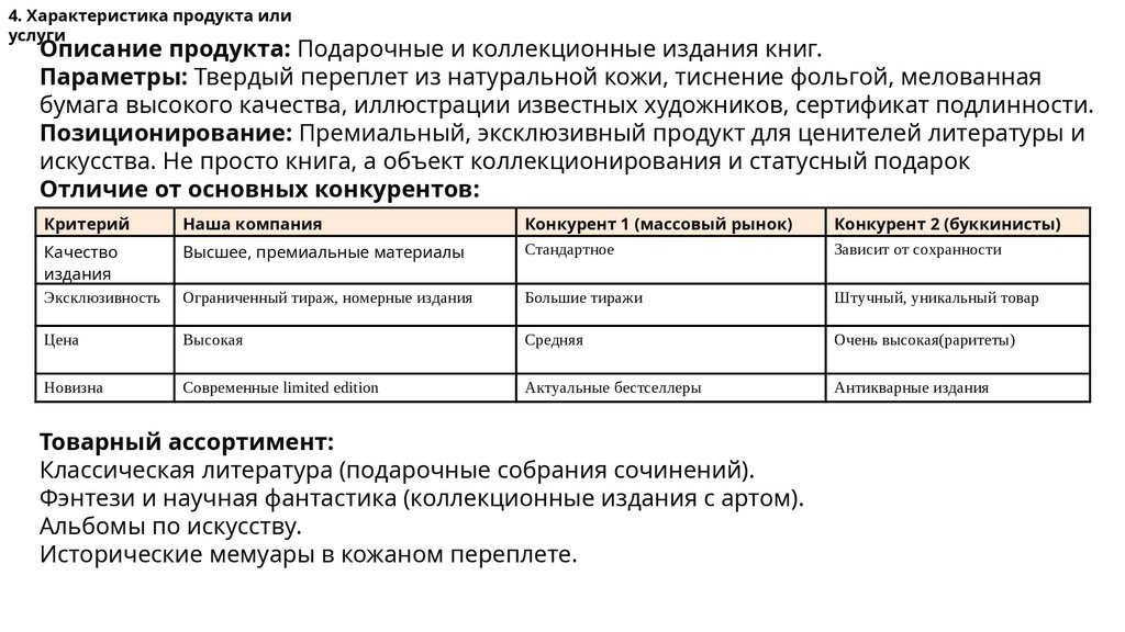 4. Характеристика продукта илиуслуги