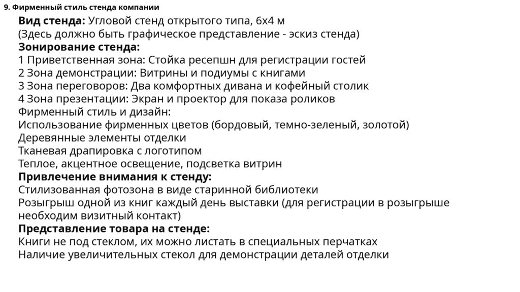 9. Фирменный стиль стенда компанииВид стенда: Угловой стенд открытого типа, 6x4 м
