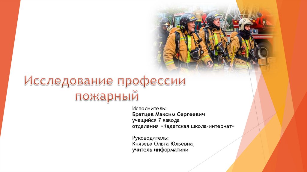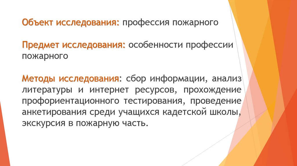 Объект исследования: профессия пожарногоПредмет исследования: особенности профессии
