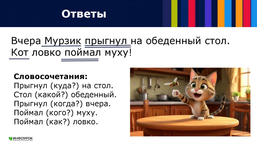 ОтветыВчера Мурзик прыгнул на обеденный стол.