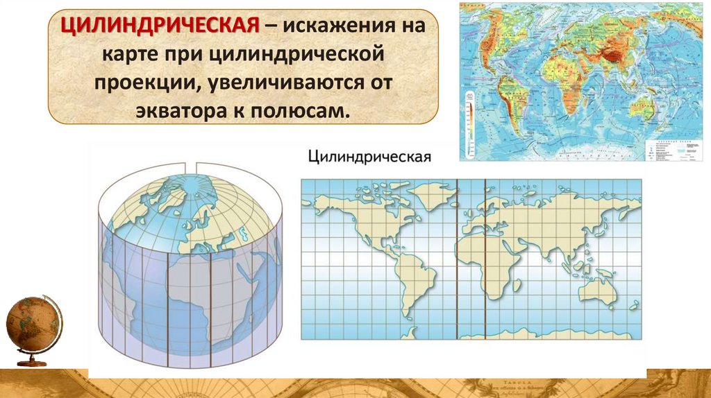 ЦИЛИНДРИЧЕСКАЯ – искажения накарте при цилиндрической