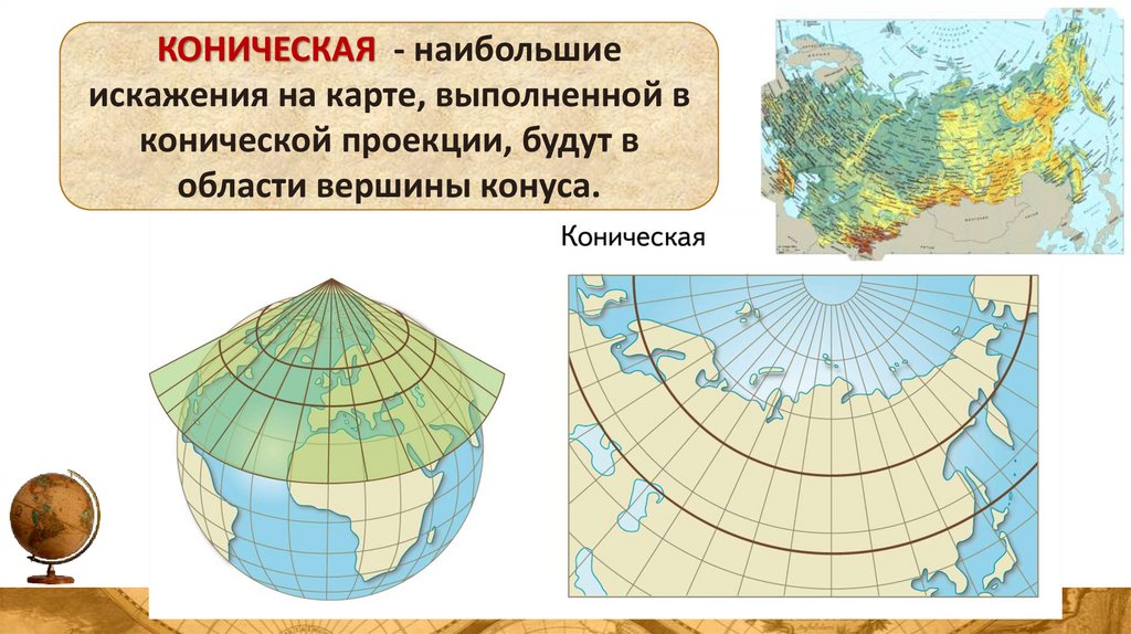 КОНИЧЕСКАЯ - наибольшиеискажения на карте, выполненной в