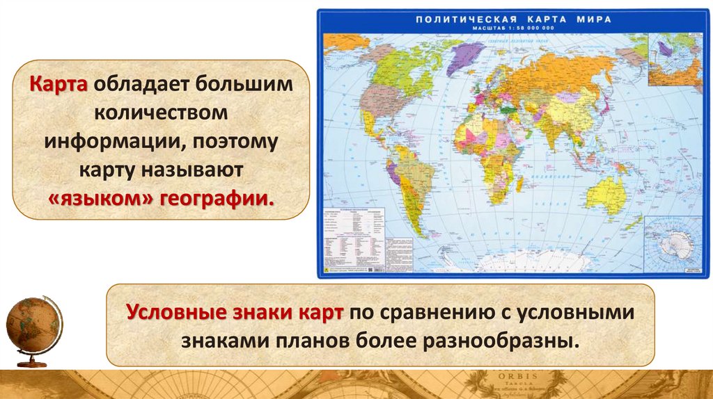 РАЗЛИЧИЯ ГЛОБУСА ИГЕОГРАФИЧЕСКОЙ КАРТЫ.