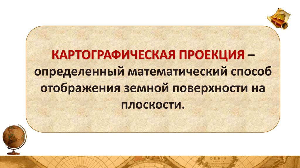КАРТОГРАФИЧЕСКАЯ ПРОЕКЦИЯ –определенный математический способ