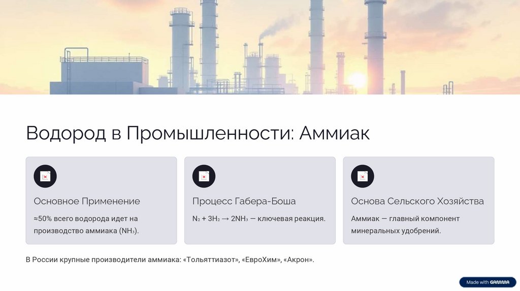 промышленности и энергетике. От производства аммиака до чистого