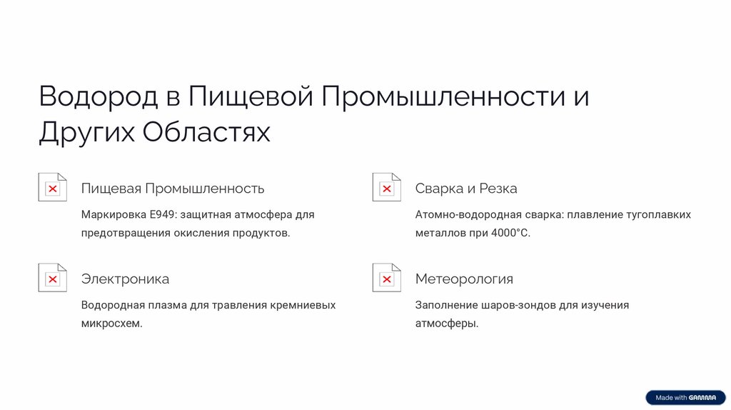 Водород в Пищевой Промышленности иДругих Областях
