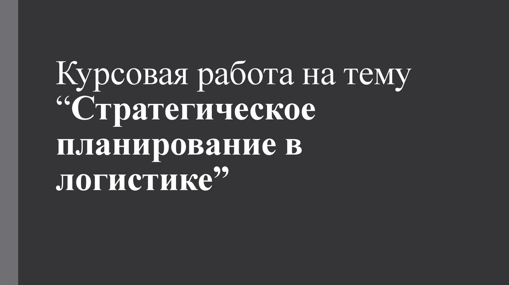 1. Курсовая работа на тему “Стратегическое планирование в логистике”