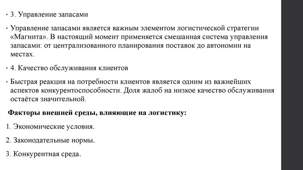 • 3. Управление запасами• Управление запасами является важным элементом логистической стратегии
