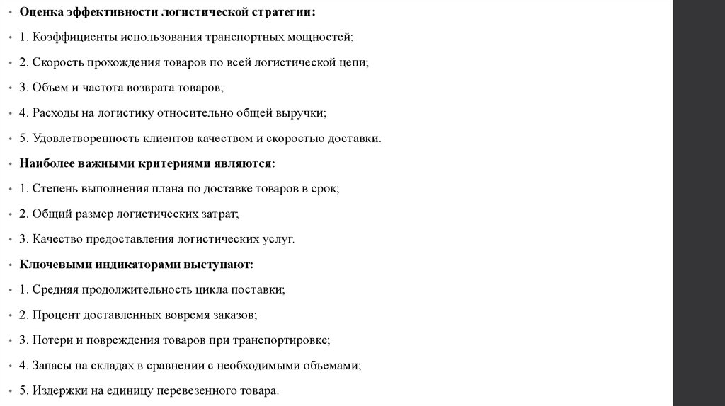 уровня клиентской лояльности. Однако эффективное функционирование логистической системы