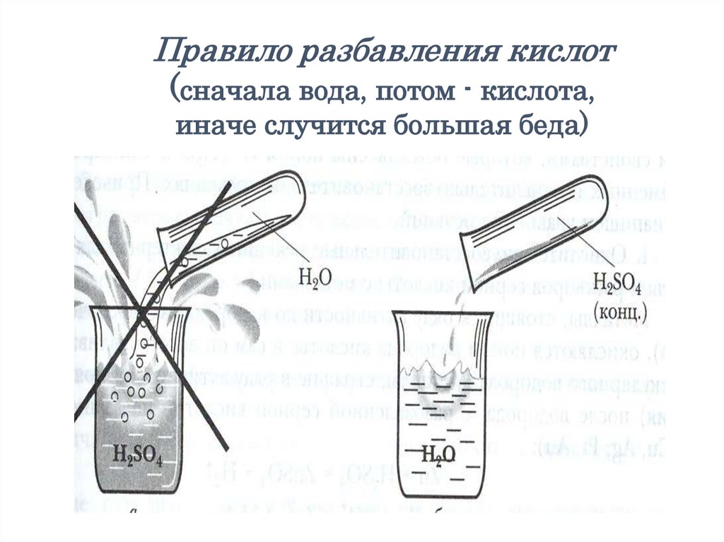 Правило разбавления кислот(сначала вода, потом - кислота,