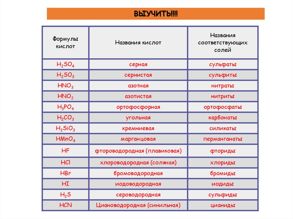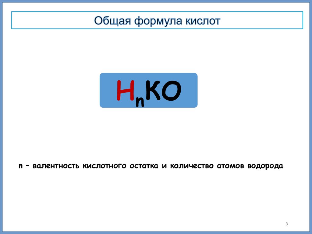 НnКOn – валентность кислотного остатка и количество атомов водорода
