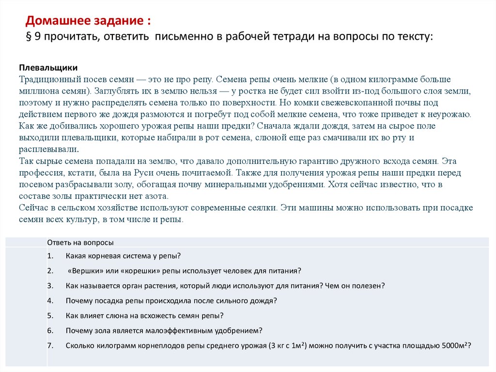 Домашнее задание :§ 9 прочитать, ответить письменно в рабочей тетради на вопросы по тексту: