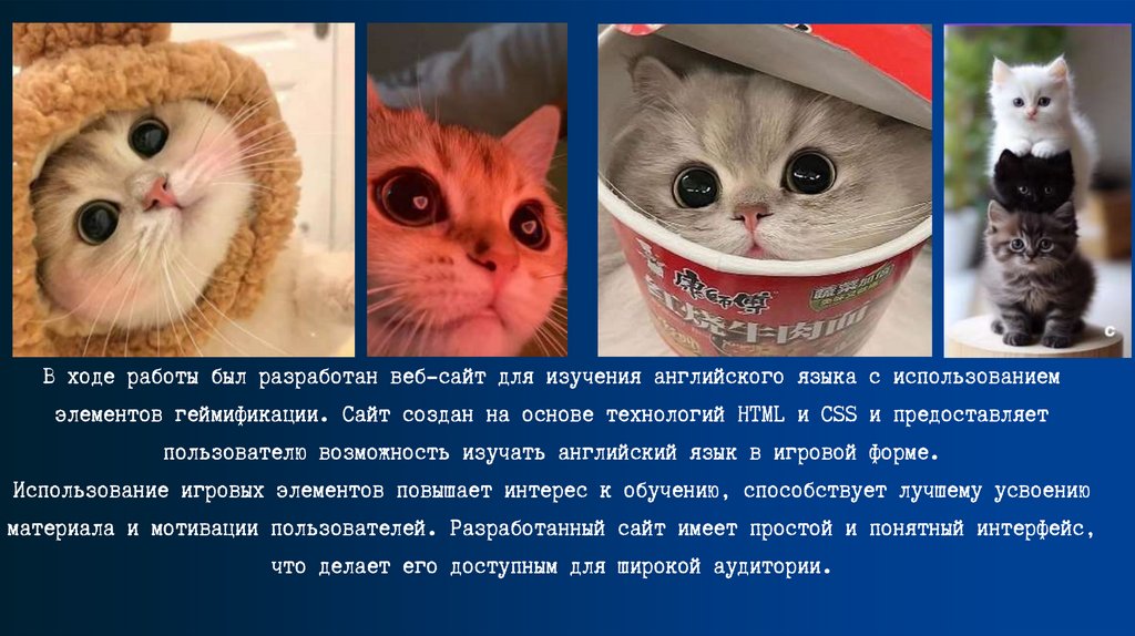 Сайт предназначен для изучения английского языка с применением геймификации.