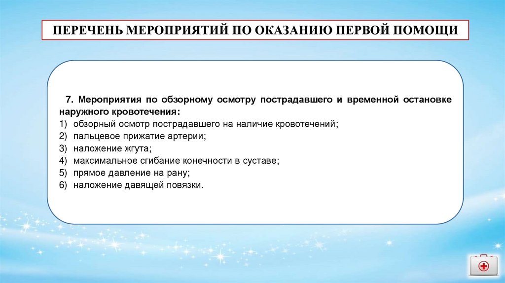 ПЕРЕЧЕНЬ МЕРОПРИЯТИЙ ПО ОКАЗАНИЮ ПЕРВОЙ ПОМОЩИ3.