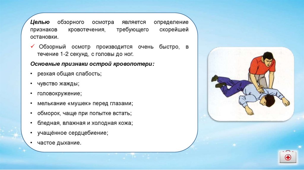 Цель первой помощи состоит в устранении явлений, угрожающих жизни, а также - в