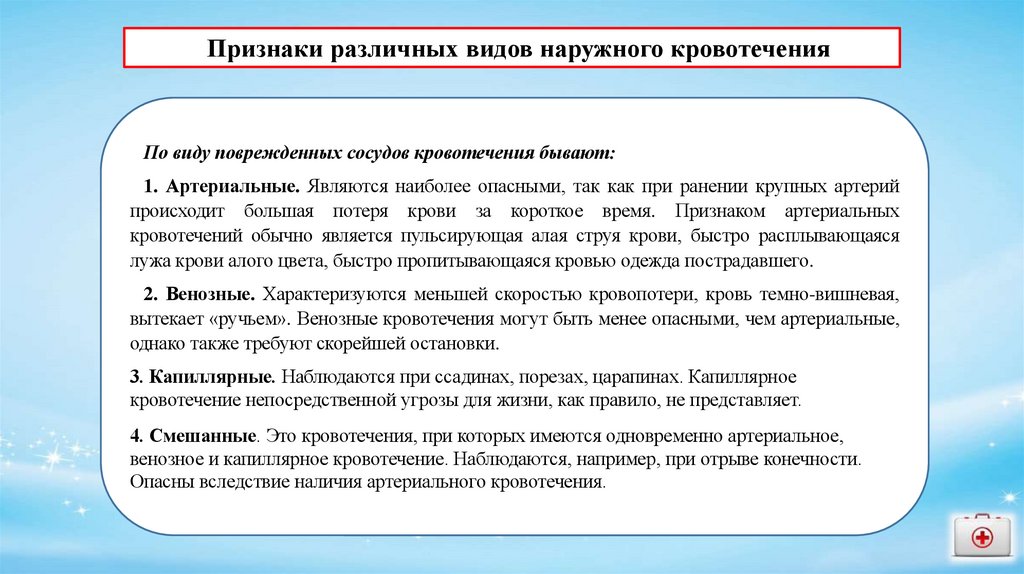 3. Оказание первой помощи при наружных кровотечениях и травмах.