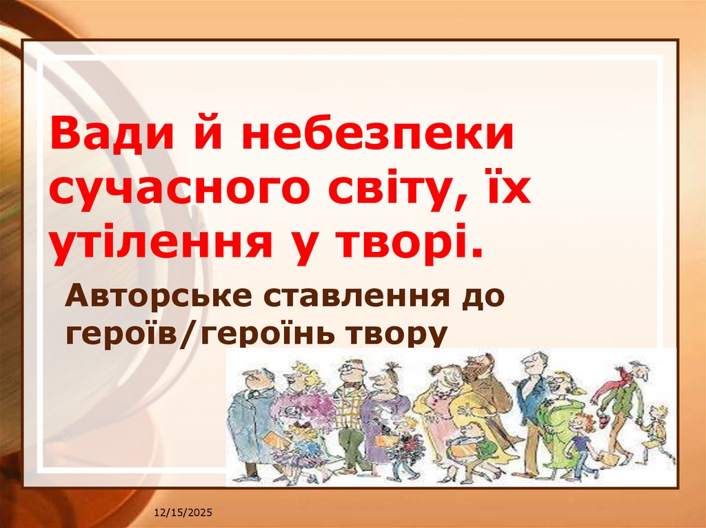 1. Вади й небезпеки сучасного світу, їх утілення у творі.