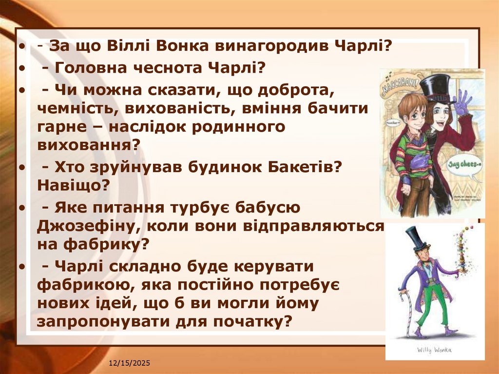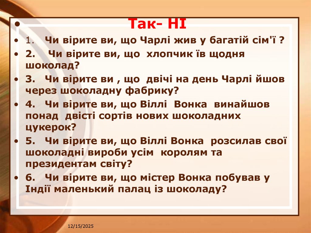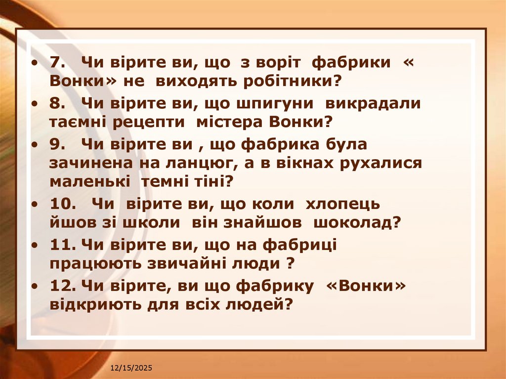 • 12. Чи вірите, ви що фабрику «Вонки»