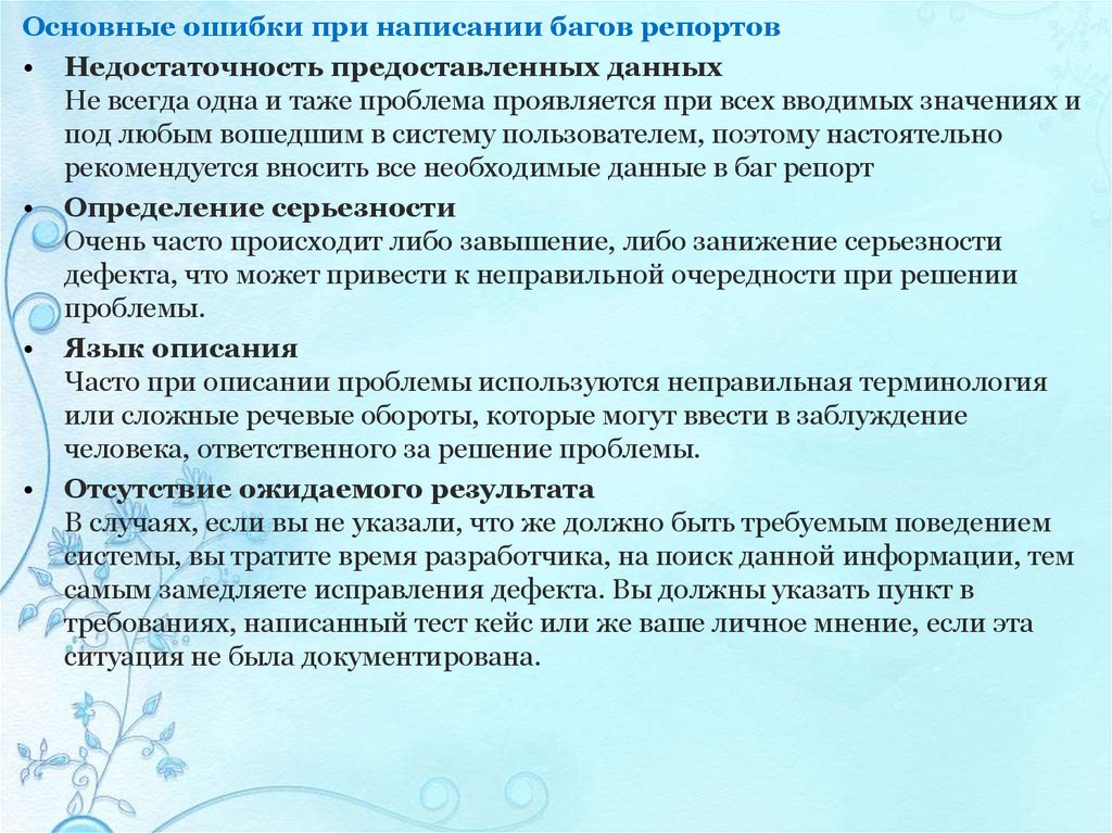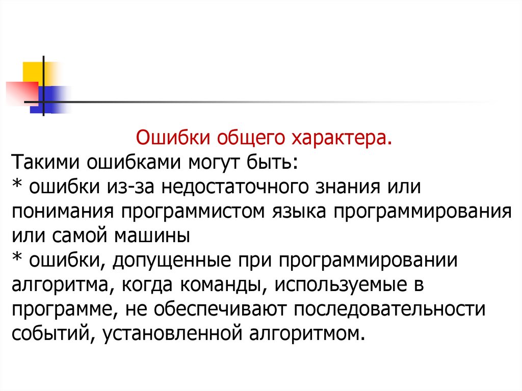 Ошибки общего характера.Такими ошибками могут быть: