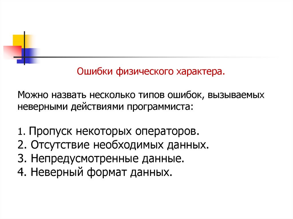 Ошибки физического характера.Можно назвать несколько типов ошибок, вызываемых