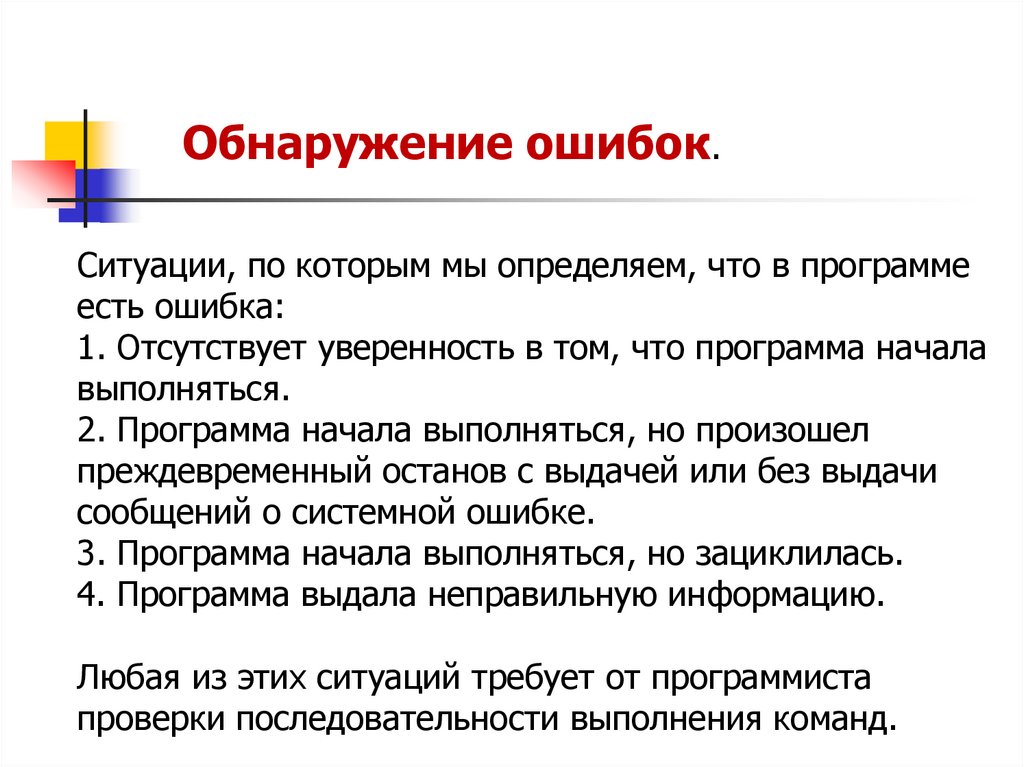 Обнаружение ошибок.Ситуации, по которым мы определяем, что в программе
