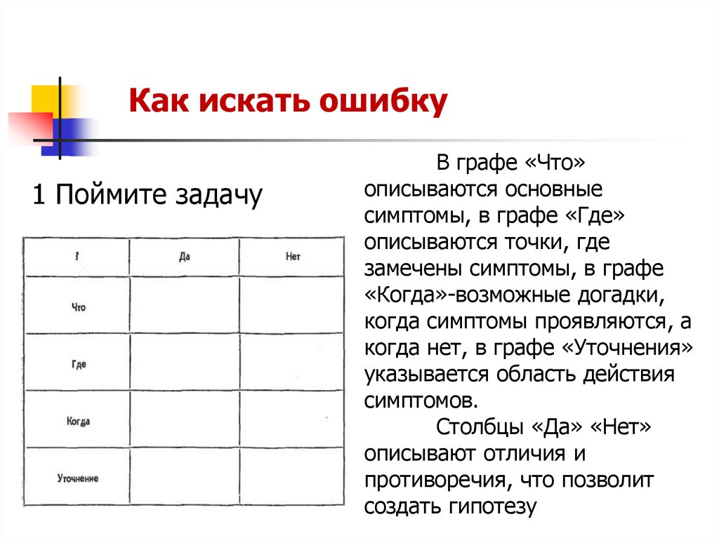 Как искать ошибку1 Поймите задачу