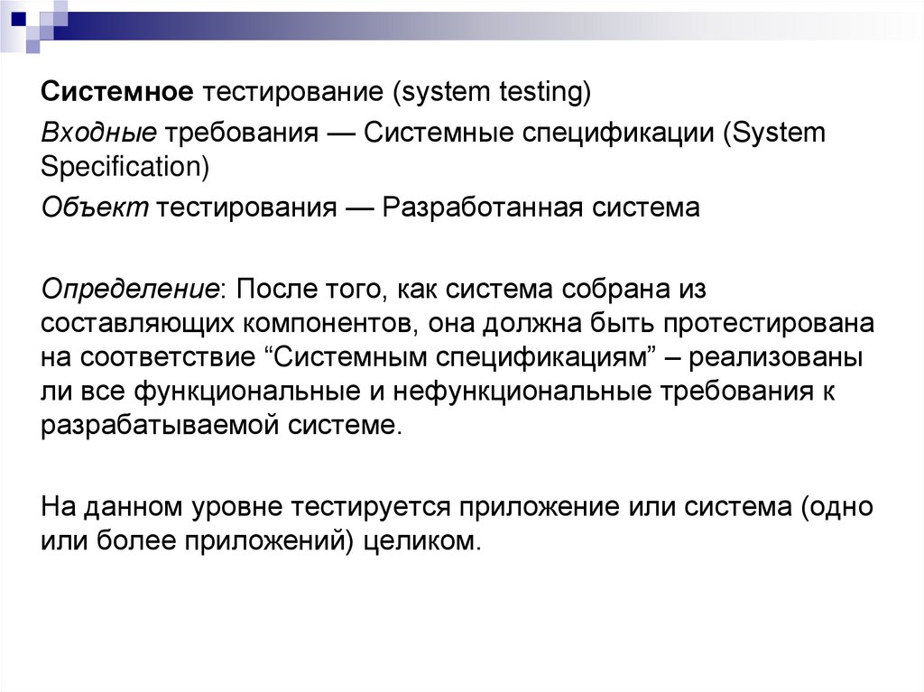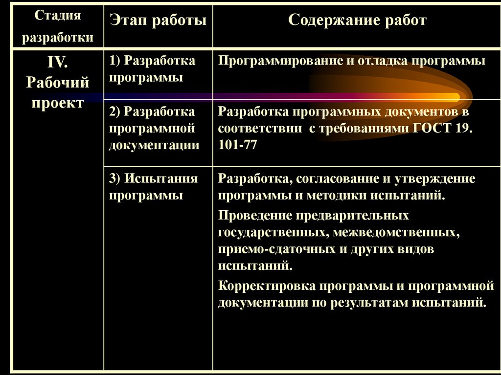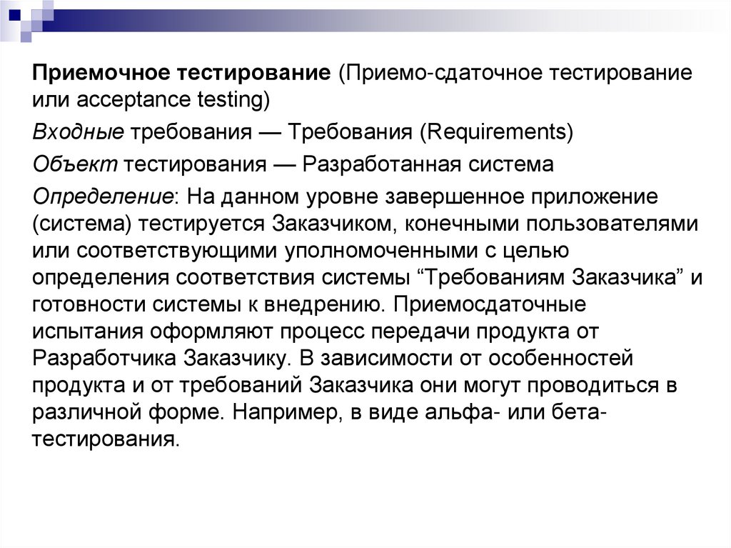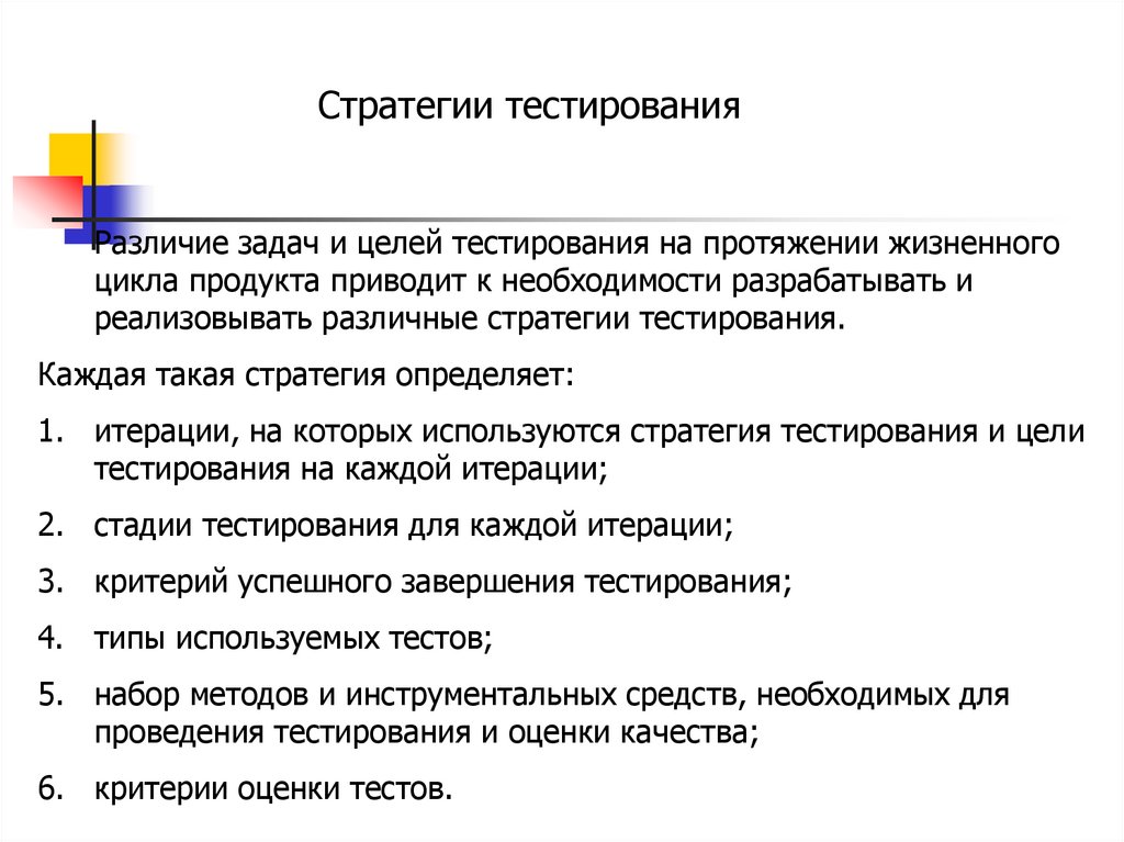 изучения, спецификаций требований, планов тестирования и
