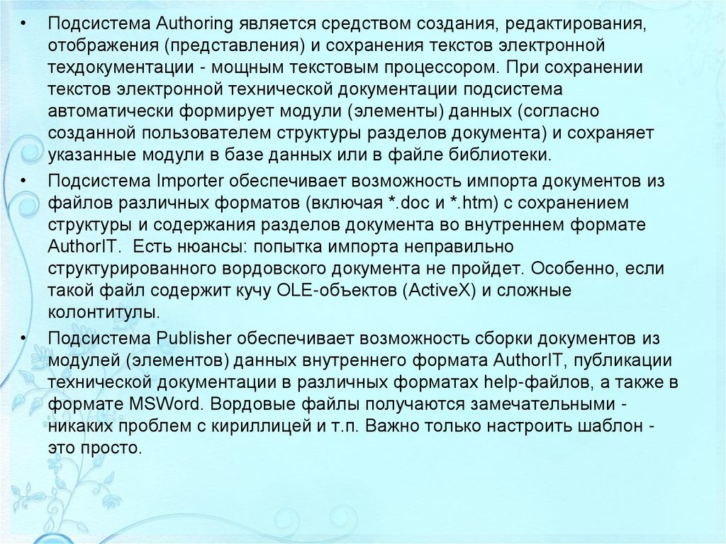 документирования – для разработки документации