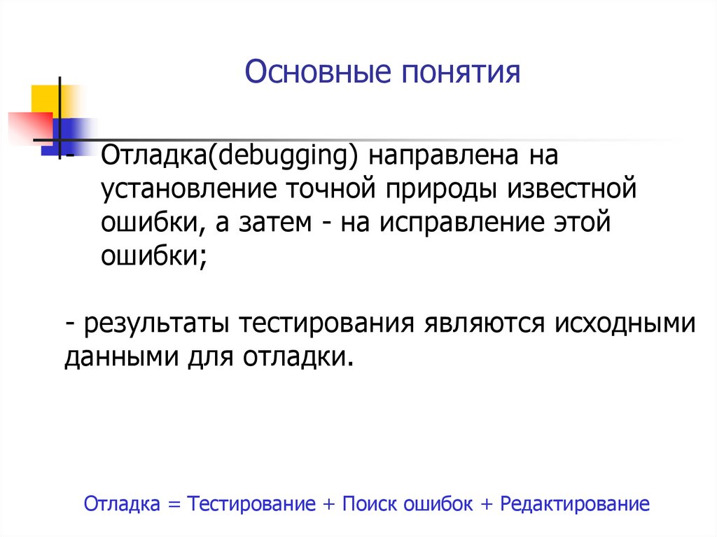 Основные понятия- Отладка(debugging) направлена на