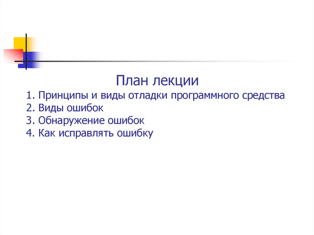 План лекции1. Принципы и виды отладки программного средства