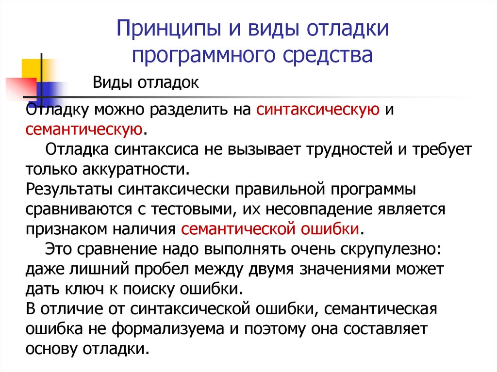 Принципы и виды отладкипрограммного средства