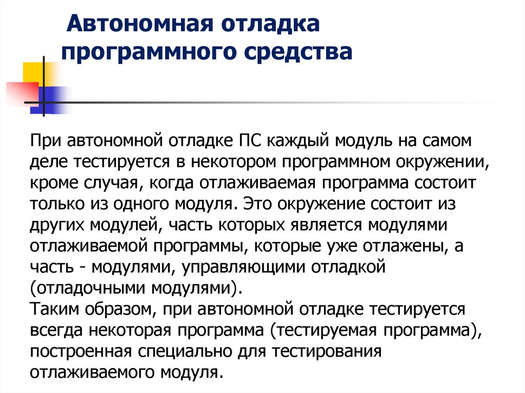 отладки ПС (или отдельной его компоненты).
