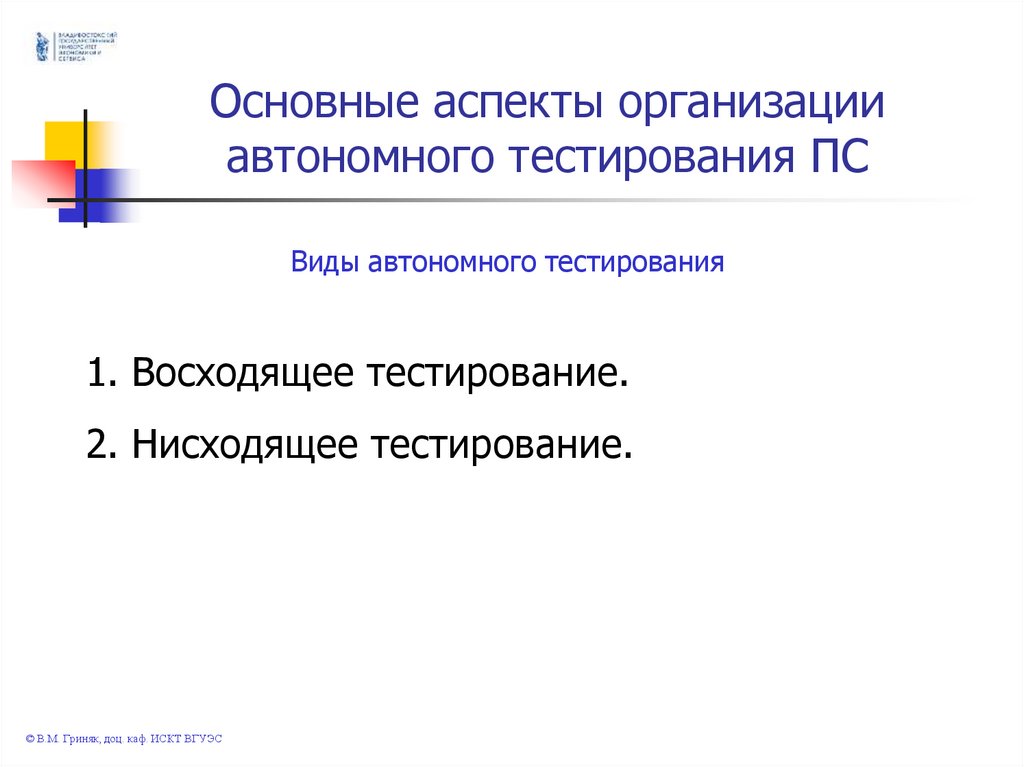 © В.М. Гриняк, доц. каф. ИСКТ ВГУЭС