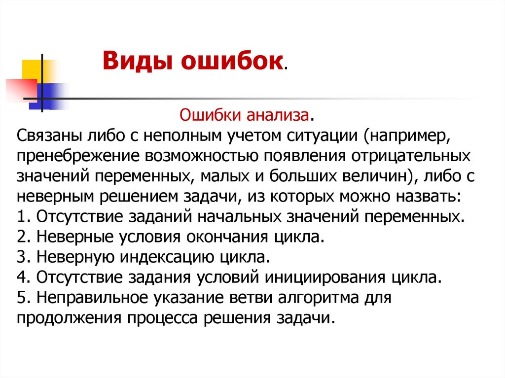 Виды ошибок.Ошибки анализа.