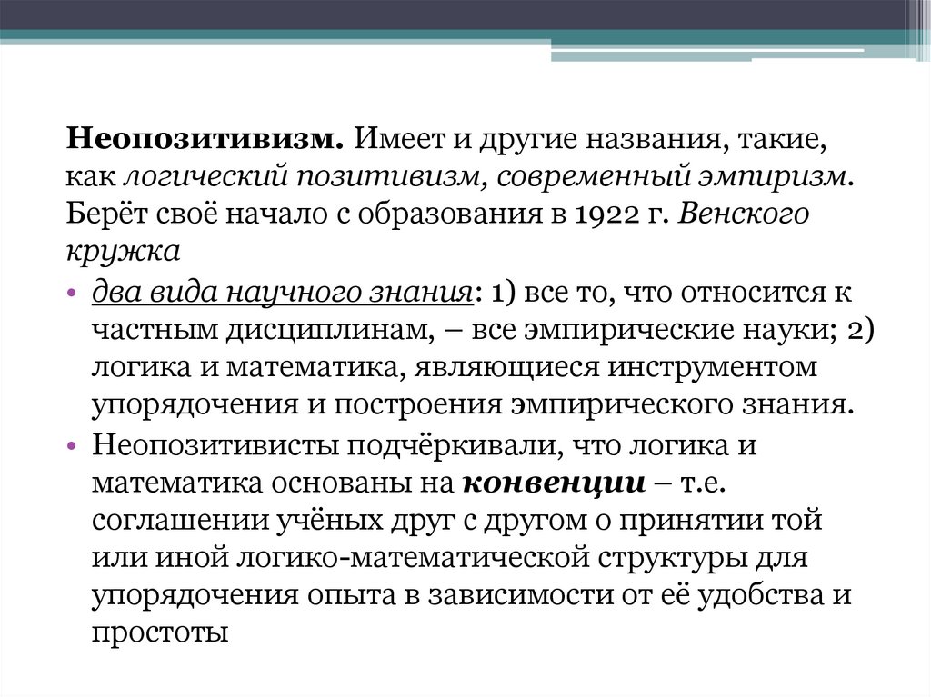 Неопозитивизм. Имеет и другие названия, такие,как логический позитивизм, современный эмпиризм.